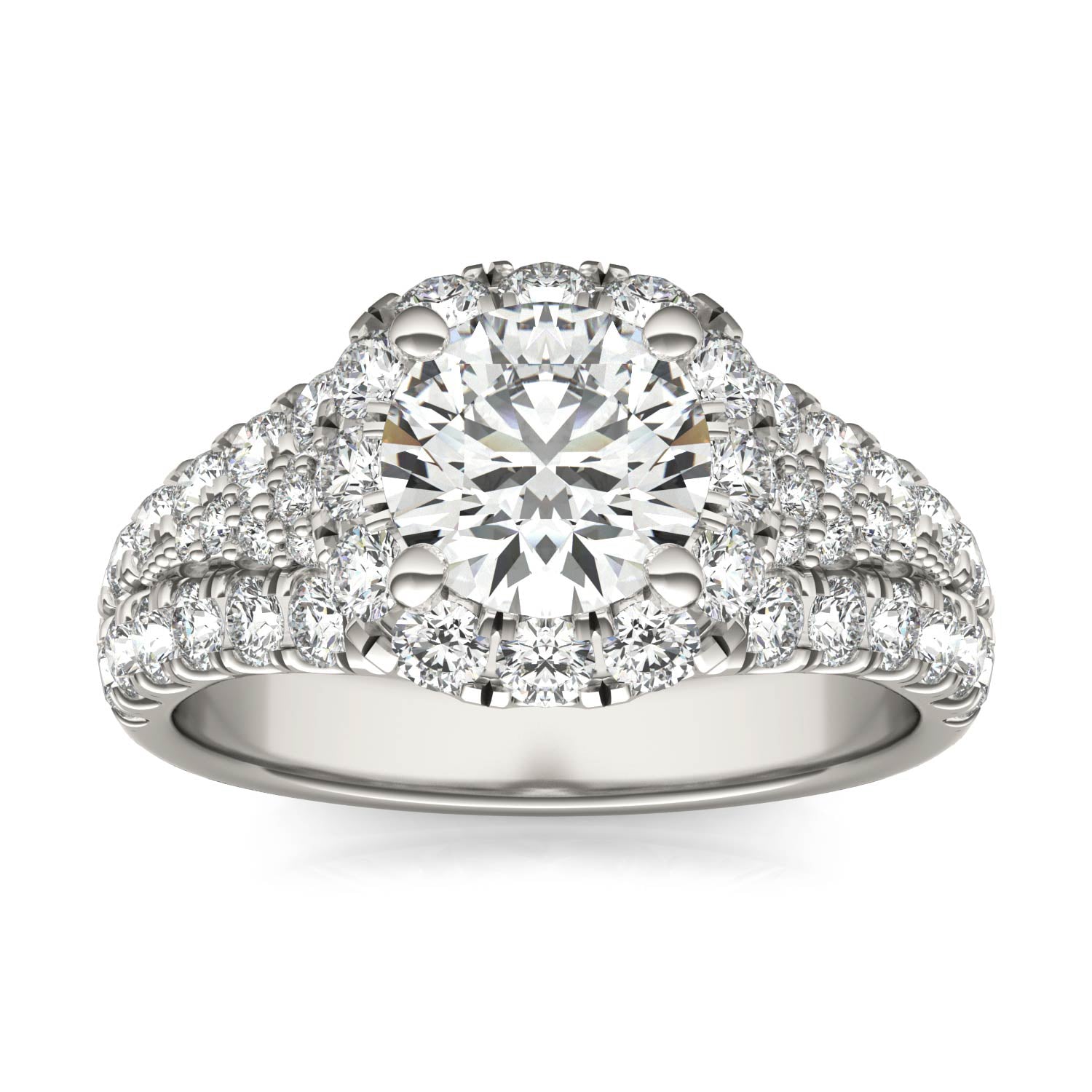 2 1/2 CTW Round Caydia Lab Grown Diamond Signature Halo Pave Engagement Ring 18K White Gold