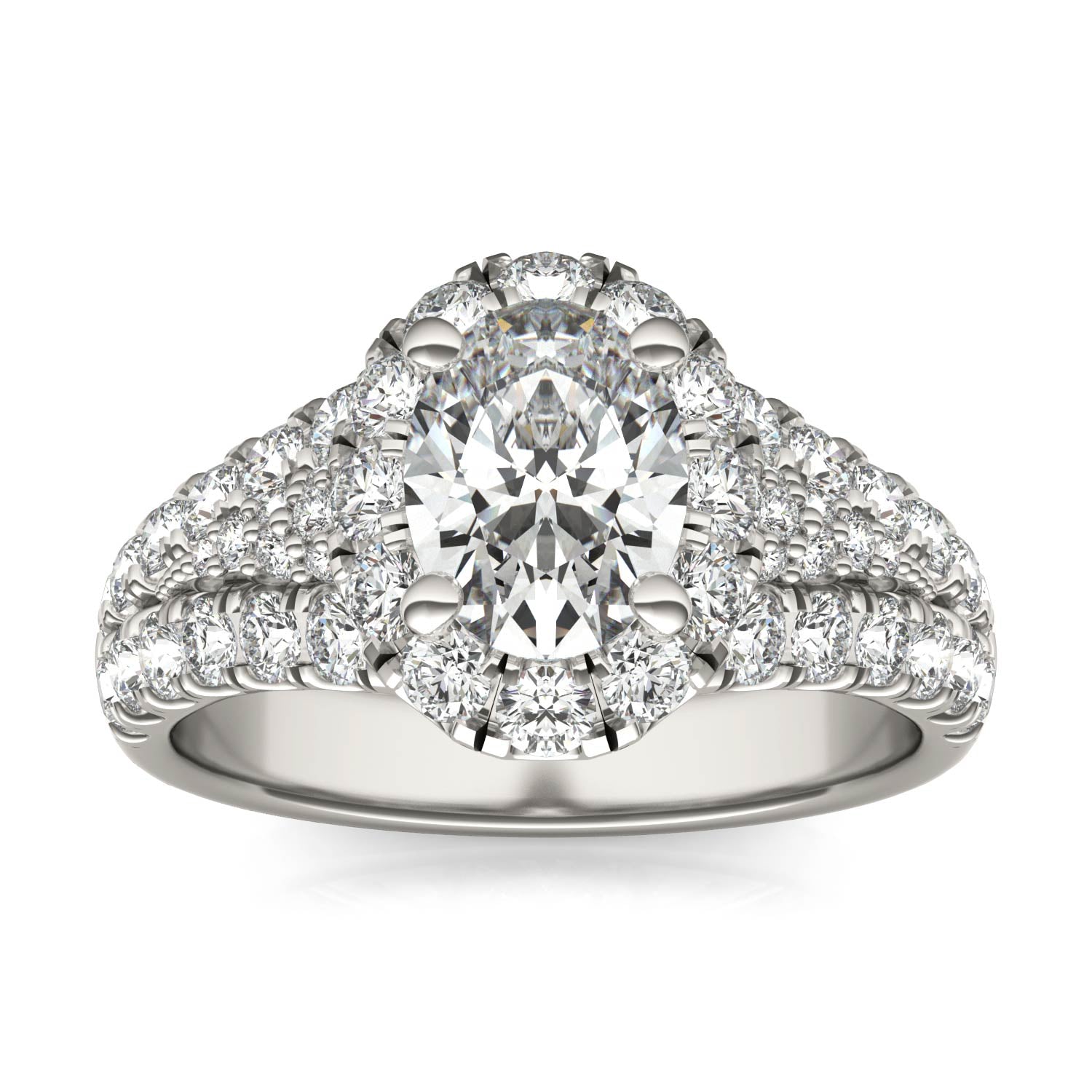2 3/4 CTW Oval Caydia Lab Grown Diamond Signature Halo Pave Engagement Ring 18K White Gold