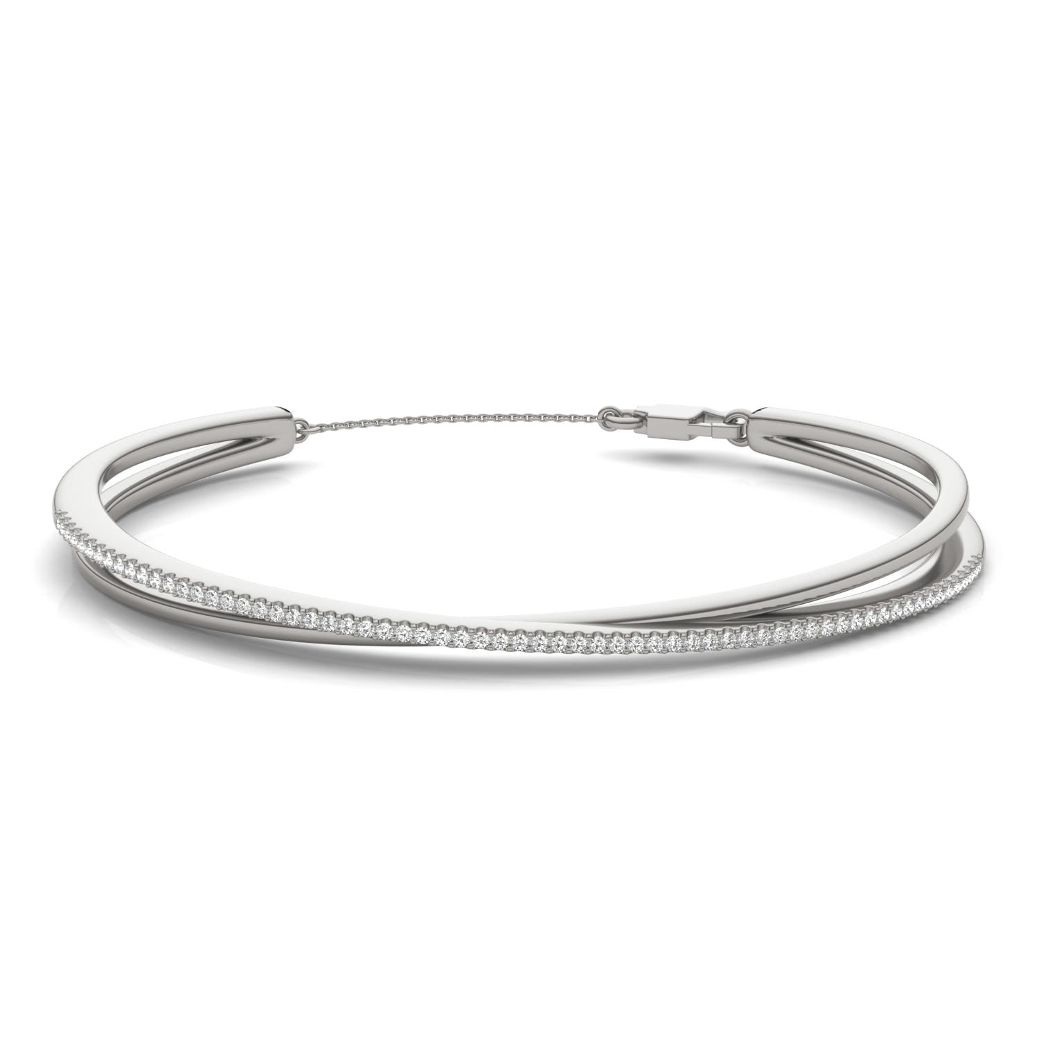 1/3 CTW Round Caydia Lab Grown Diamond Crossover Bangle Bracelet 14K White Gold