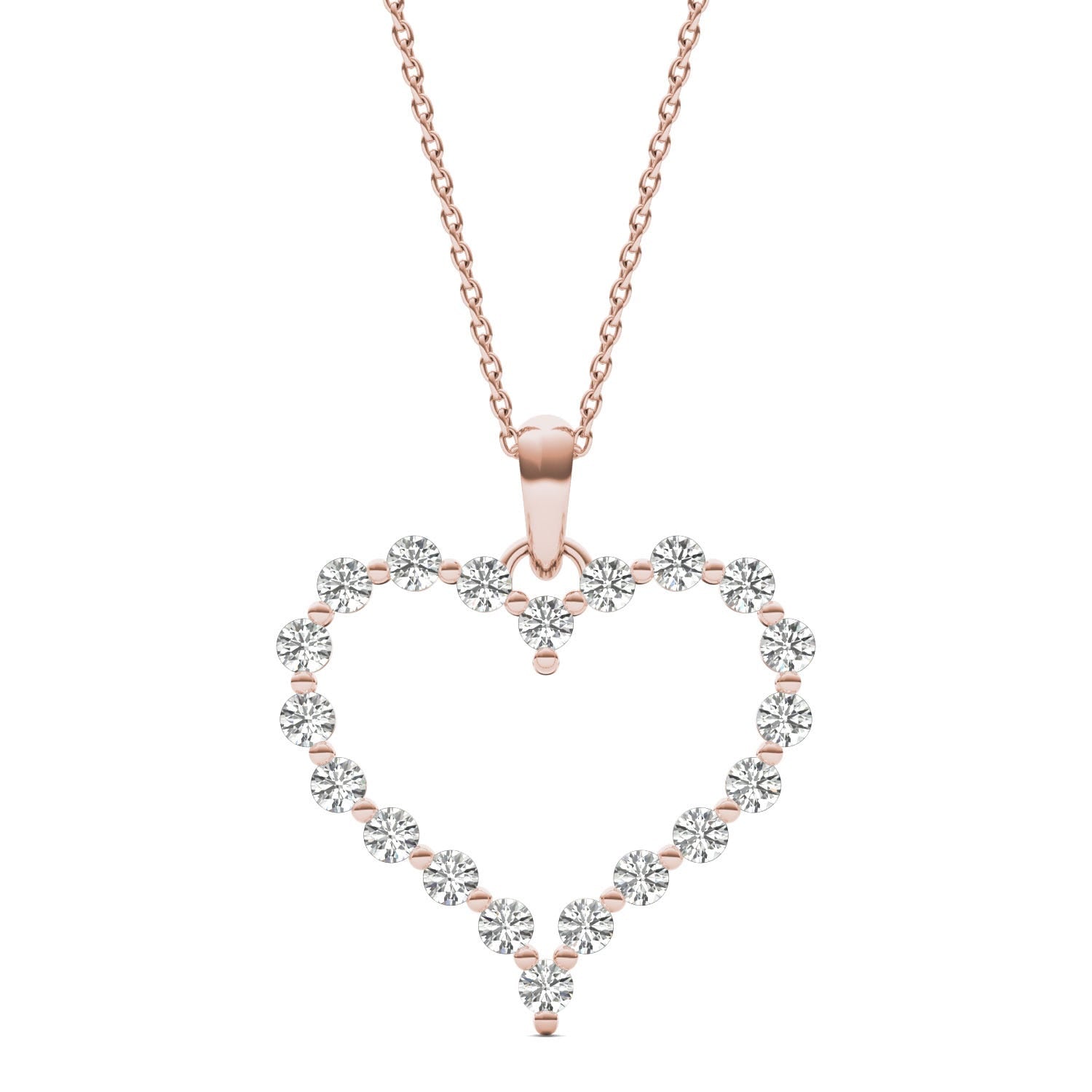 1 CTW Round Caydia Lab Grown Diamond Heart Necklace 14K Rose Gold