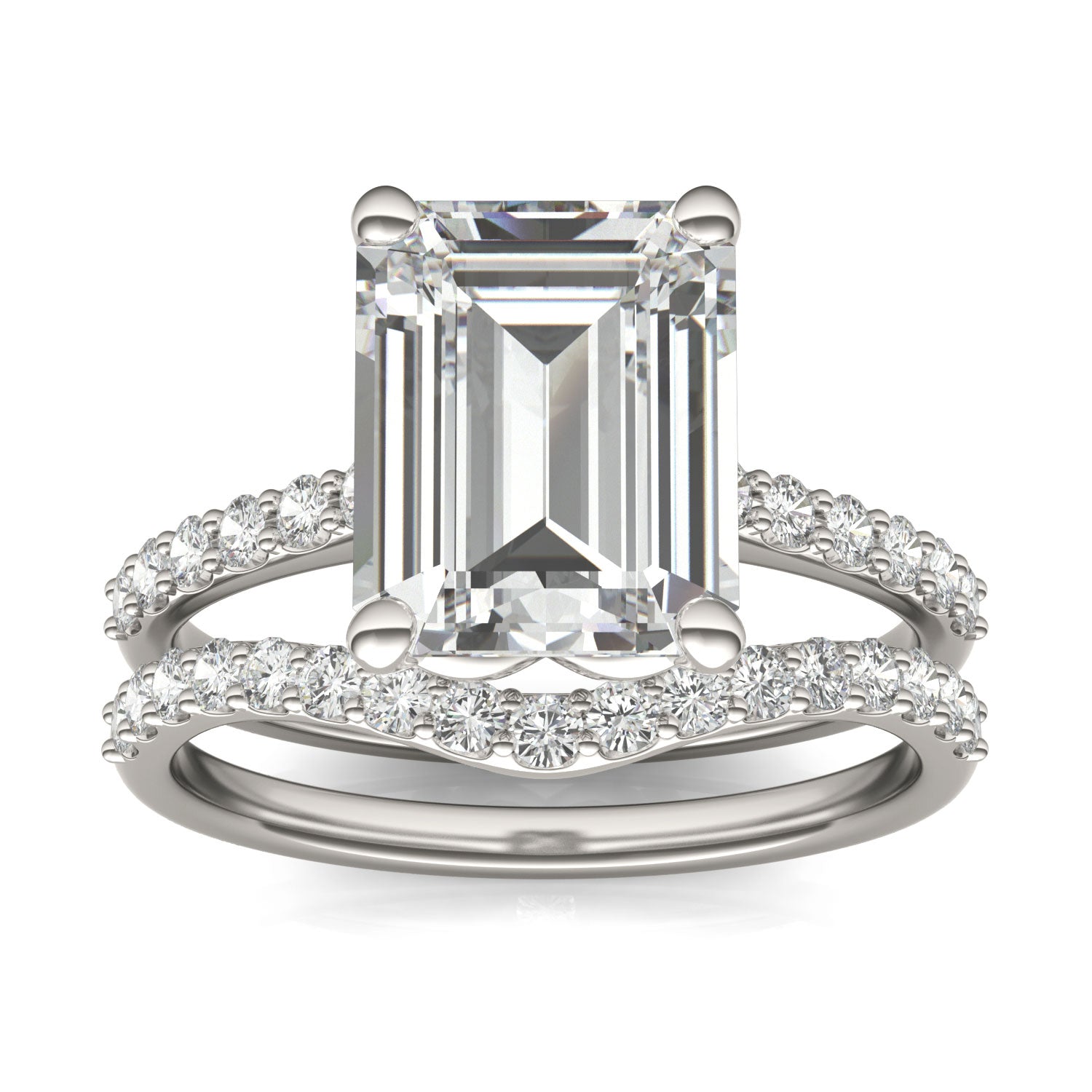 4.15 CTW DEW Emerald Forever One Moissanite Signature Solitaire with Side Accents Wedding Set in 14K White Gold