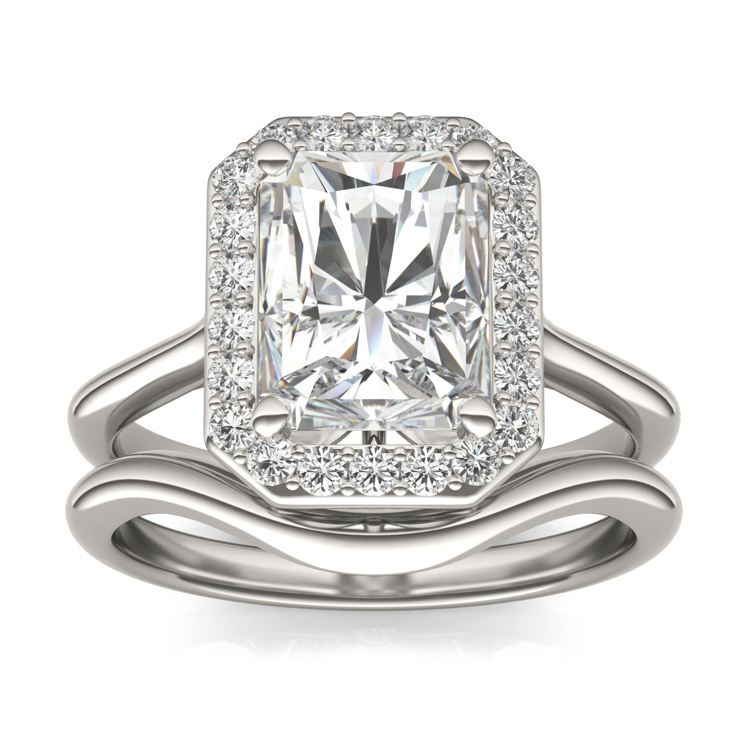 3.06 CTW DEW Radiant Forever One Moissanite Signature Halo Wedding Set in 14K White Gold