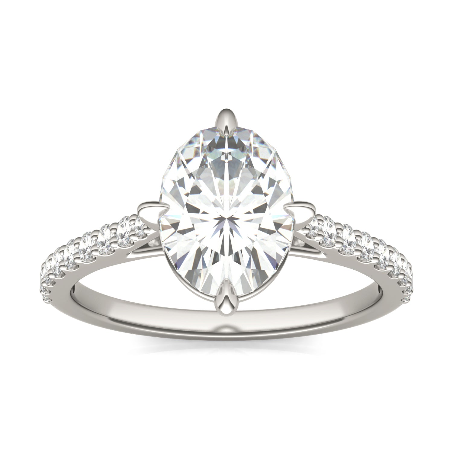 2.36 CTW DEW Oval Forever One Moissanite Compass Prong Engagement Ring 14K White Gold