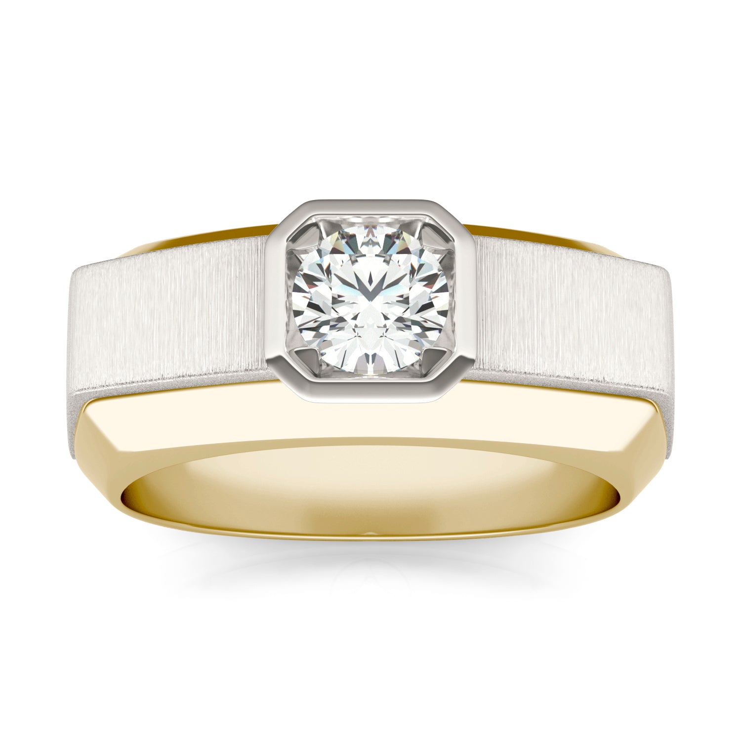 1/2 CTW Round Caydia Lab Grown Diamond Signature Classic Solitaire Mens Ring 14K Two-Tone Yellow & White Gold