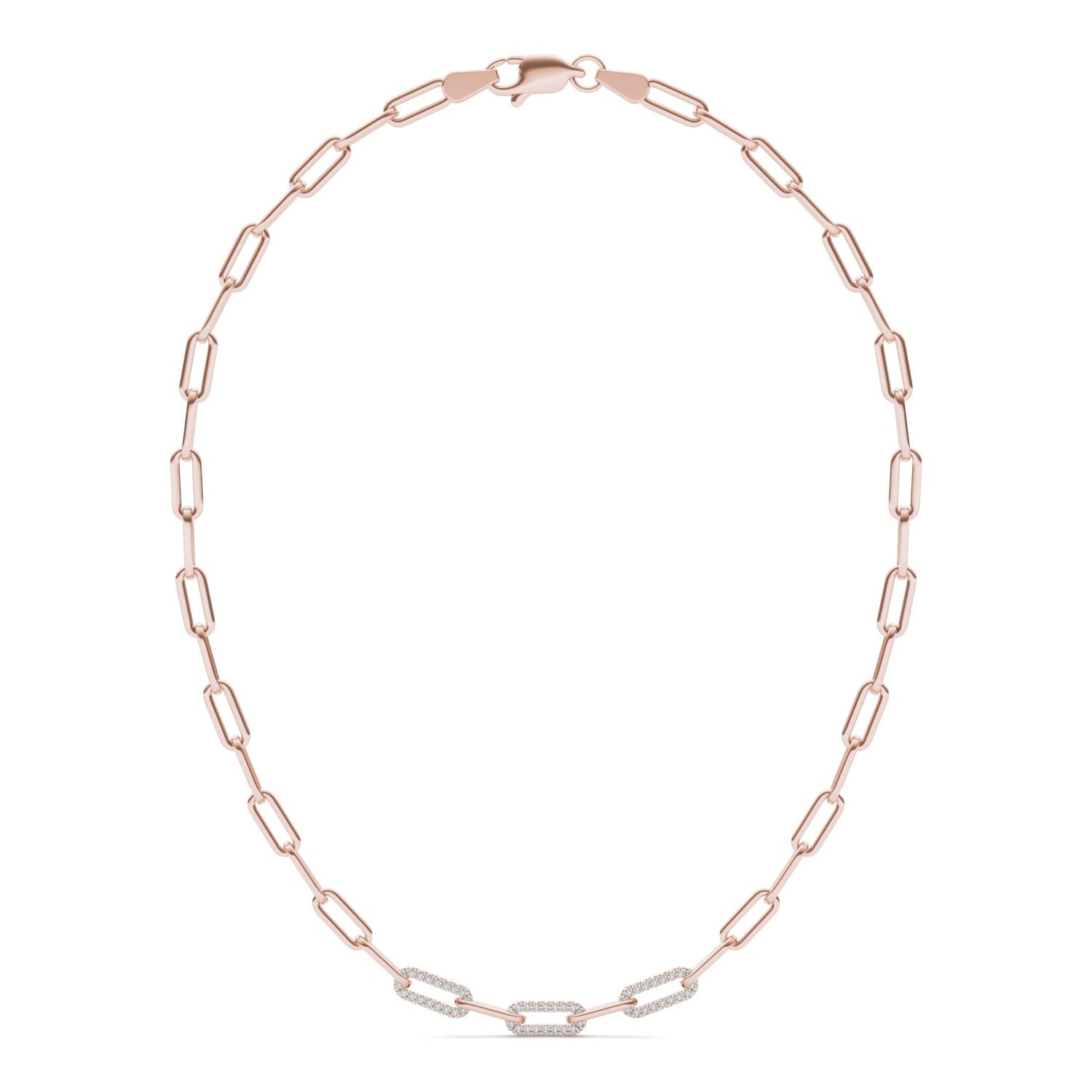 7/8 CTW Round Caydia Lab Grown Diamond 36in Alternating Chain Link Necklace 14K Rose Gold