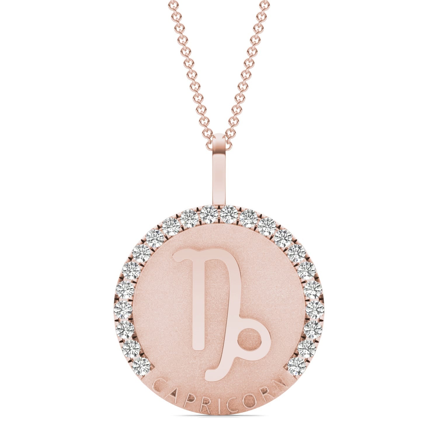2/3 CTW Round Caydia Lab Grown Diamond Capricorn Pendant 14K Rose Gold