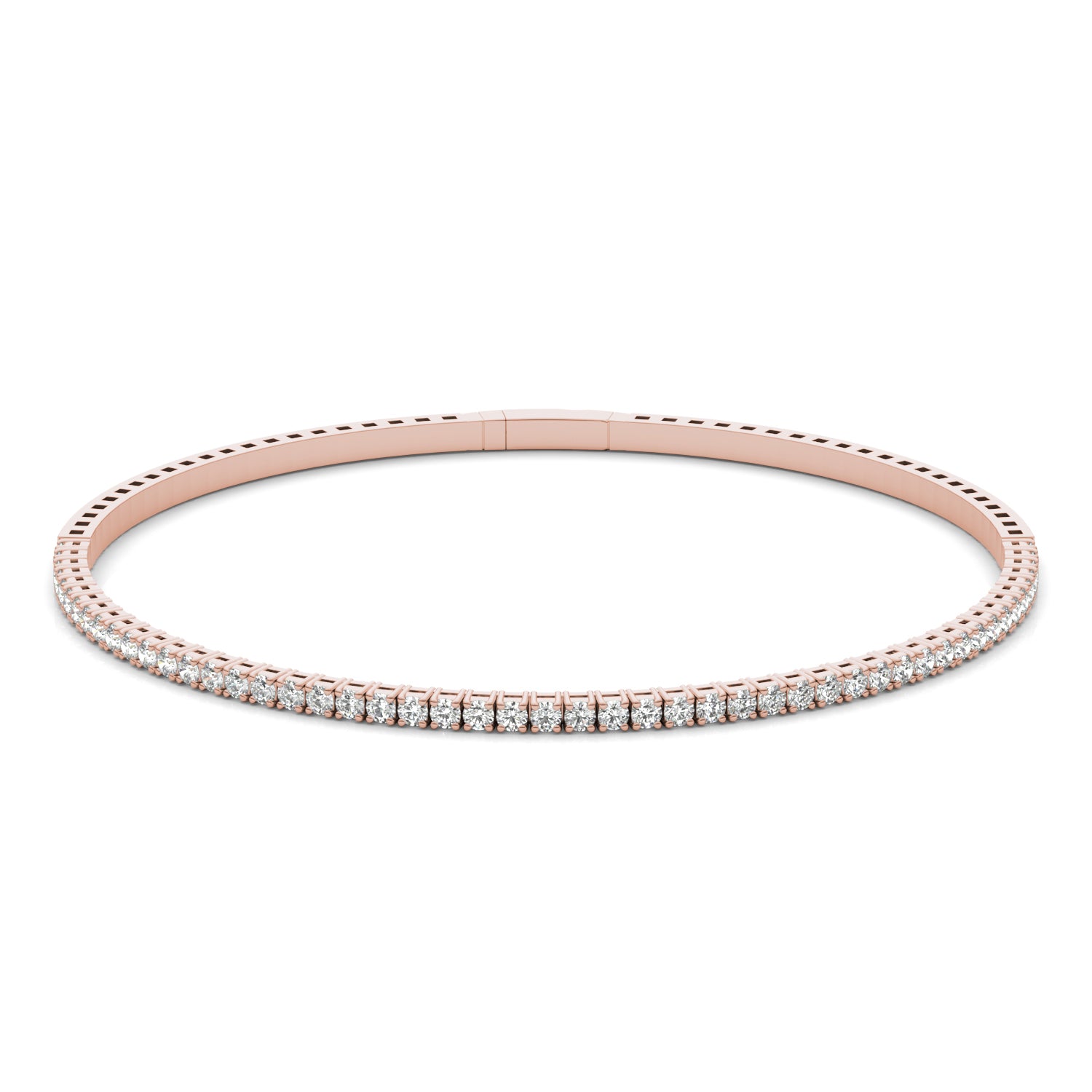 1 CTW Round Caydia Lab Grown Diamond Flexible Bangle 14K Rose Gold