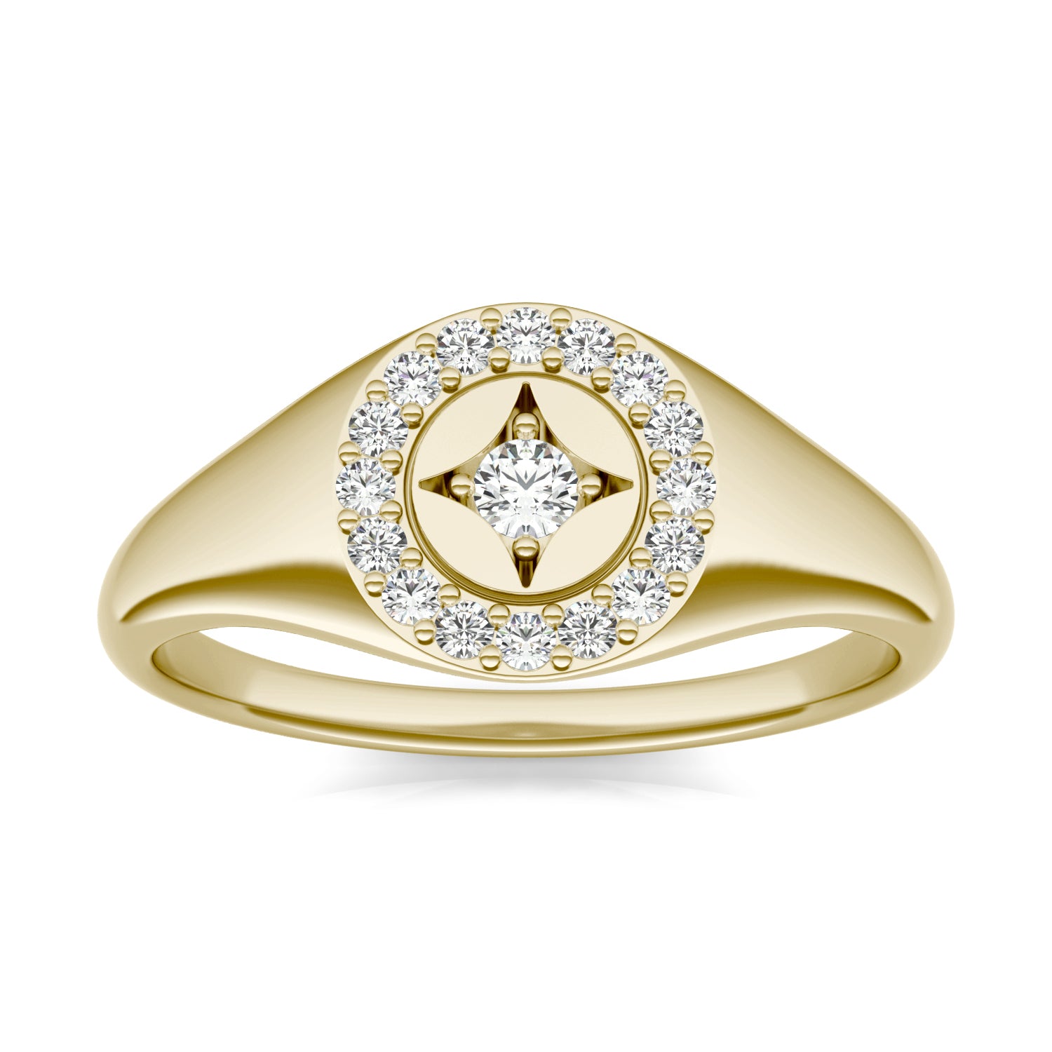 1/5 CTW Round Caydia Lab Grown Diamond Signature Star Halo Signet Ring 14K Yellow Gold