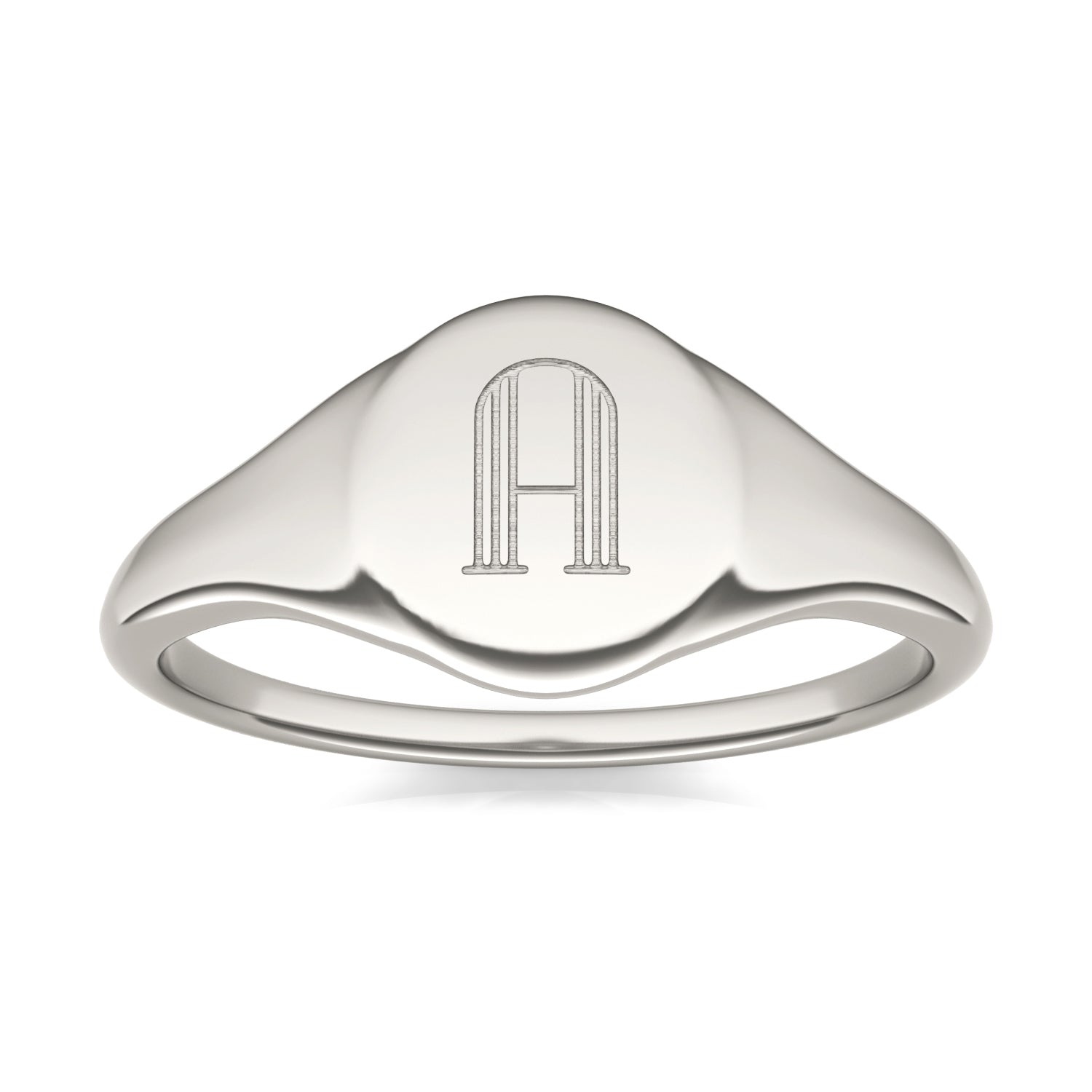 Round Caydia Lab Grown Diamond Signature Round Initial Signet Ring 14K White Gold