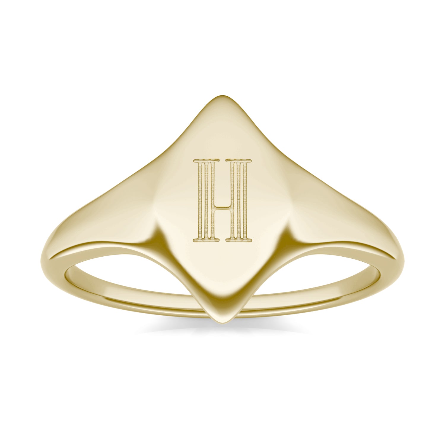Round Caydia Lab Grown Diamond Signature Marquise Initial Signet Ring 14K Yellow Gold, SIZE 7.0 Stone Color F