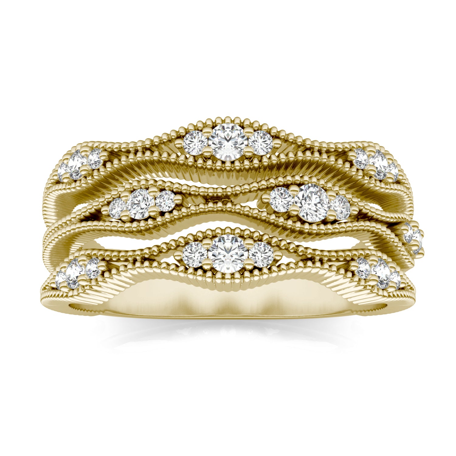 1/3 CTW Round Caydia Lab Grown Diamond Three Row Graduated Ring 14K Yellow Gold