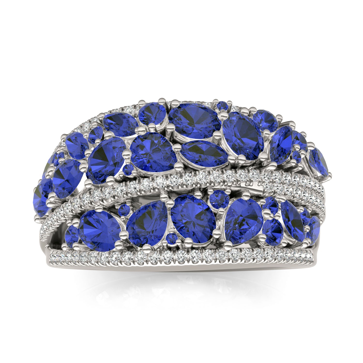 2/5 CTW Round Caydia Lab Grown Diamond Cluster Statement Ring 14K White Gold featuring Created Sapphire