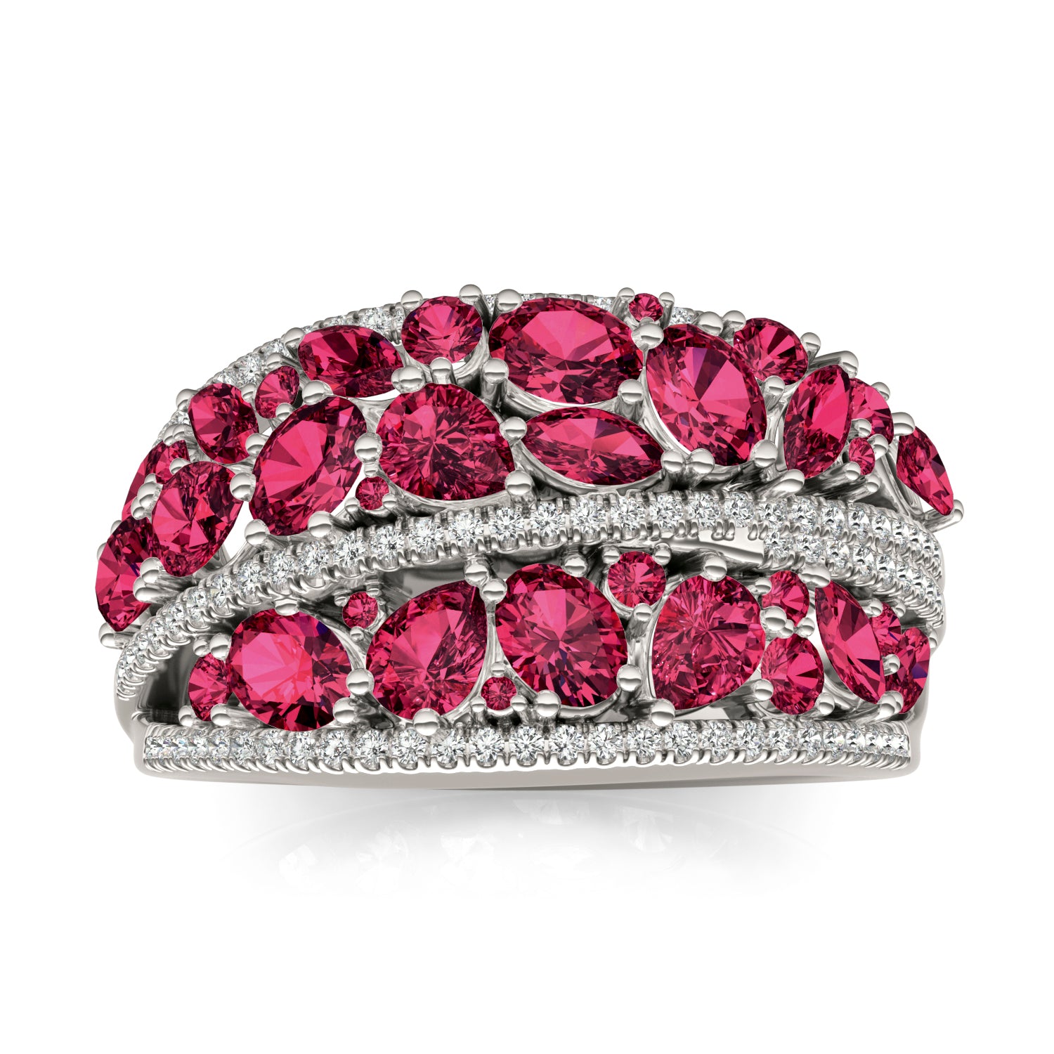 2/5 CTW Round Caydia Lab Grown Diamond Cluster Statement Ring 14K White Gold featuring Created Ruby