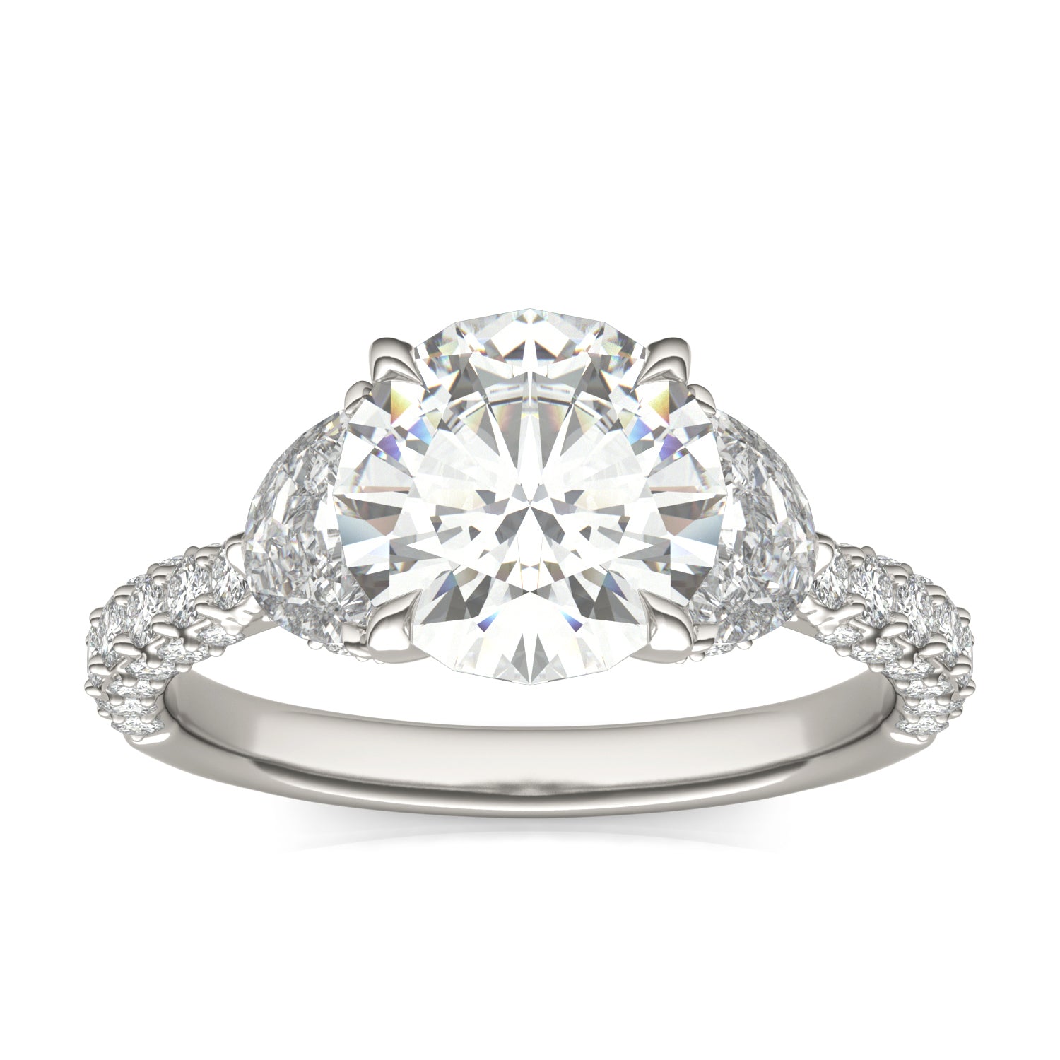 3.55 CTW DEW Round Forever One Moissanite Three Stone Pave Engagement Ring 14K White Gold