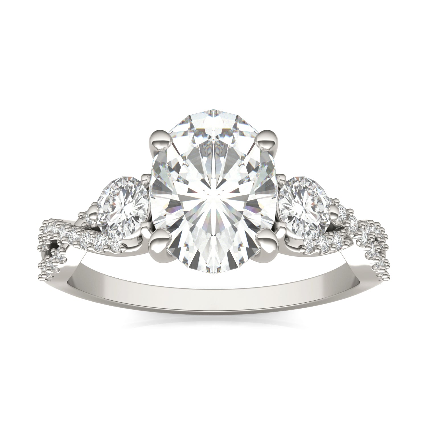 2.58 CTW DEW Oval Forever One Moissanite Three Stone Twist Engagement Ring 14K White Gold