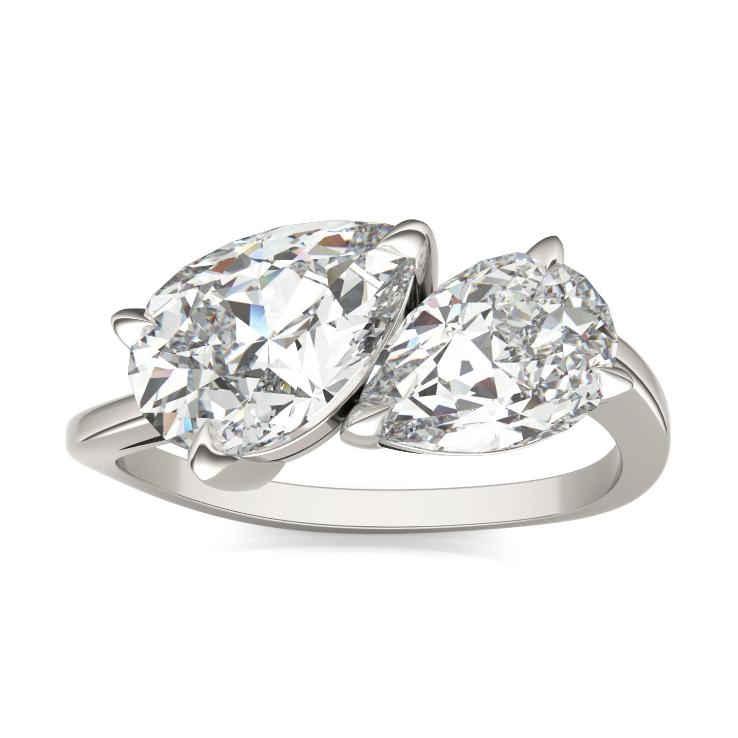 3.60 CTW DEW Pear Forever One Moissanite Bypass Toi et Moi Ring 14K White Gold