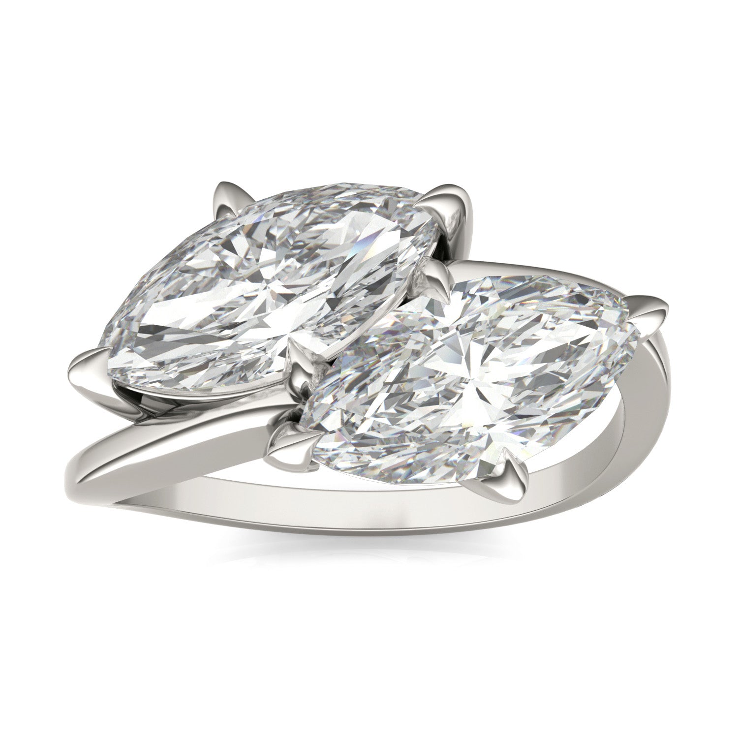 3.60 CTW DEW Marquise Forever One Moissanite Bypass Toi et Moi Ring 14K White Gold