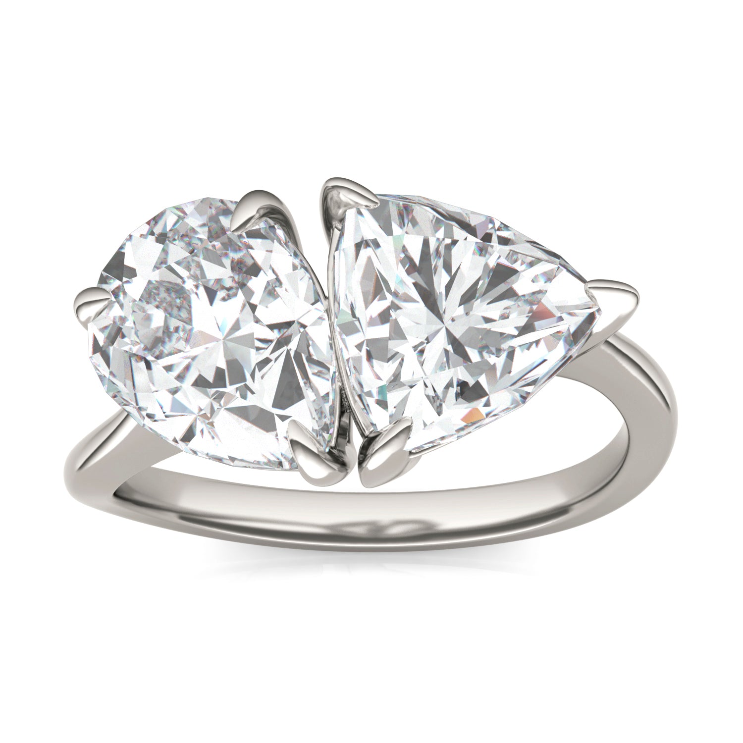 3.70 CTW DEW Pear and Trillion Forever One Moissanite Asymmetrical Toi et Moi Ring 14K White Gold