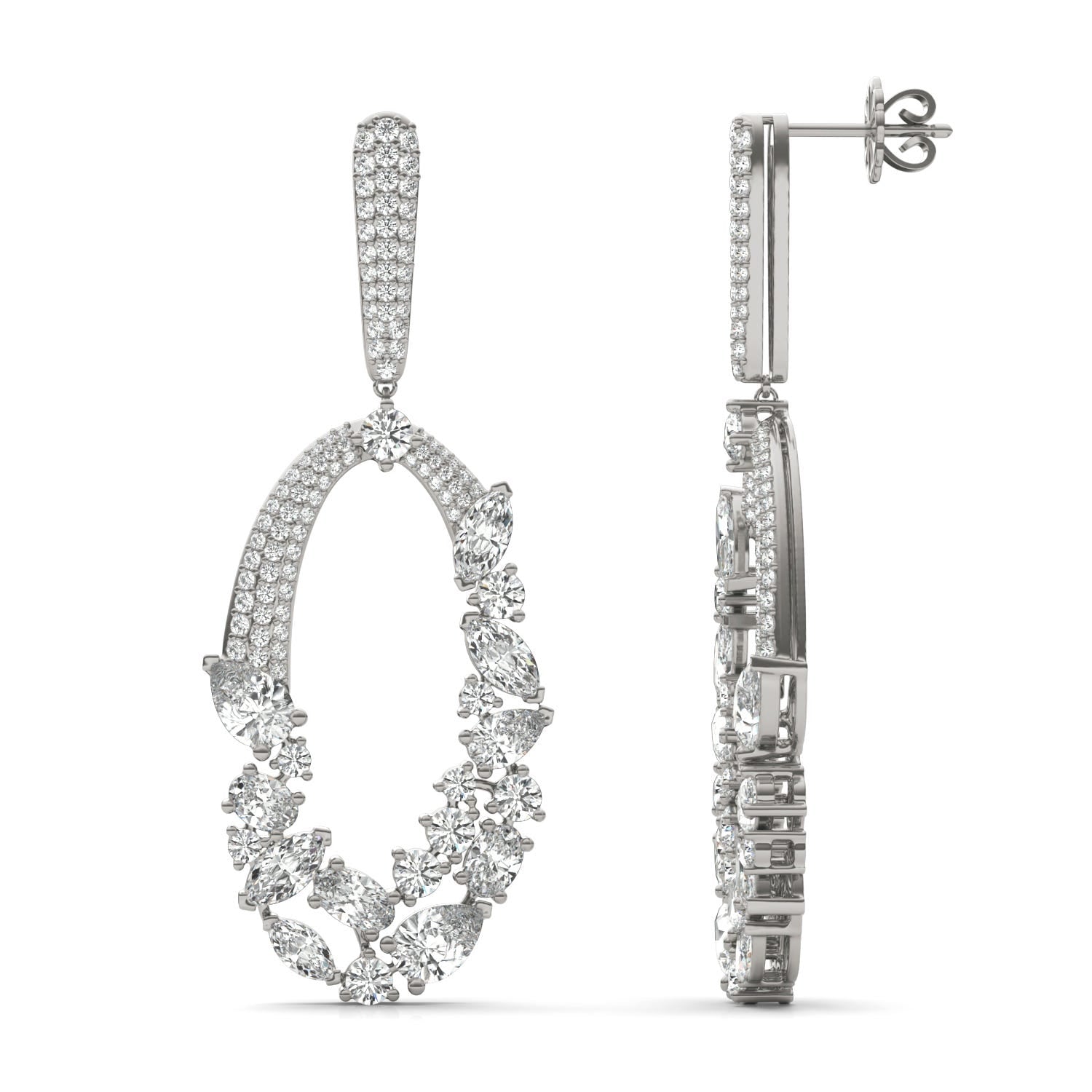 6 CTW Pear Caydia Lab Grown Diamond Couture Pave Cluster Drop Earrings 14K White Gold