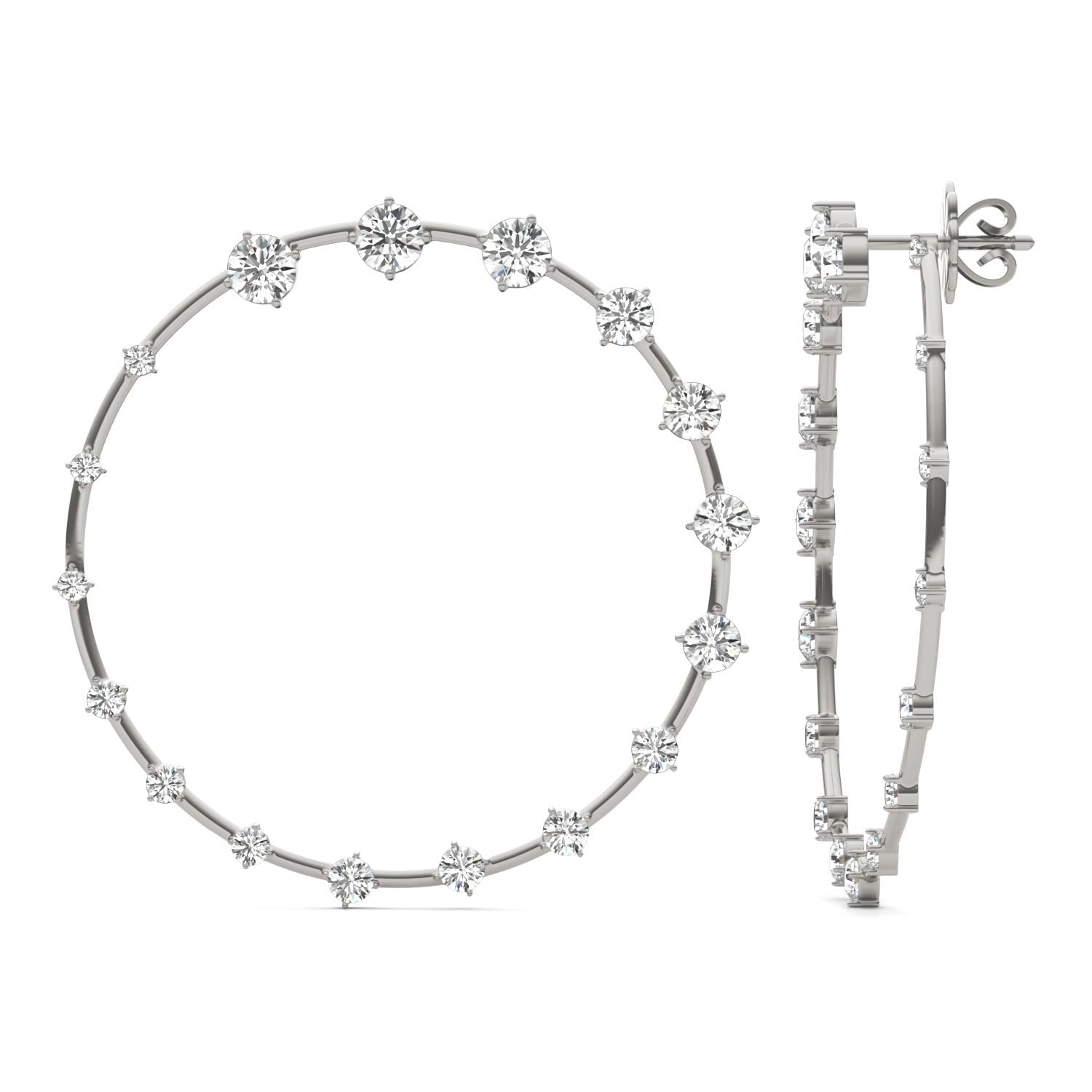 2 3/4 CTW Round Caydia Lab Grown Diamond Couture Bypass Hoop Earrings 14K White Gold