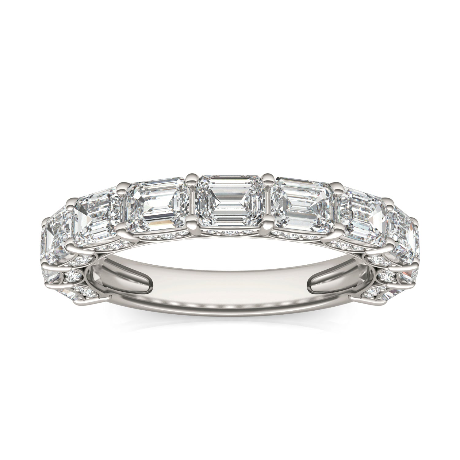 2 2/5 CTW Emerald Caydia Lab Grown Diamond Side Accented Anniversary Ring 14K White Gold