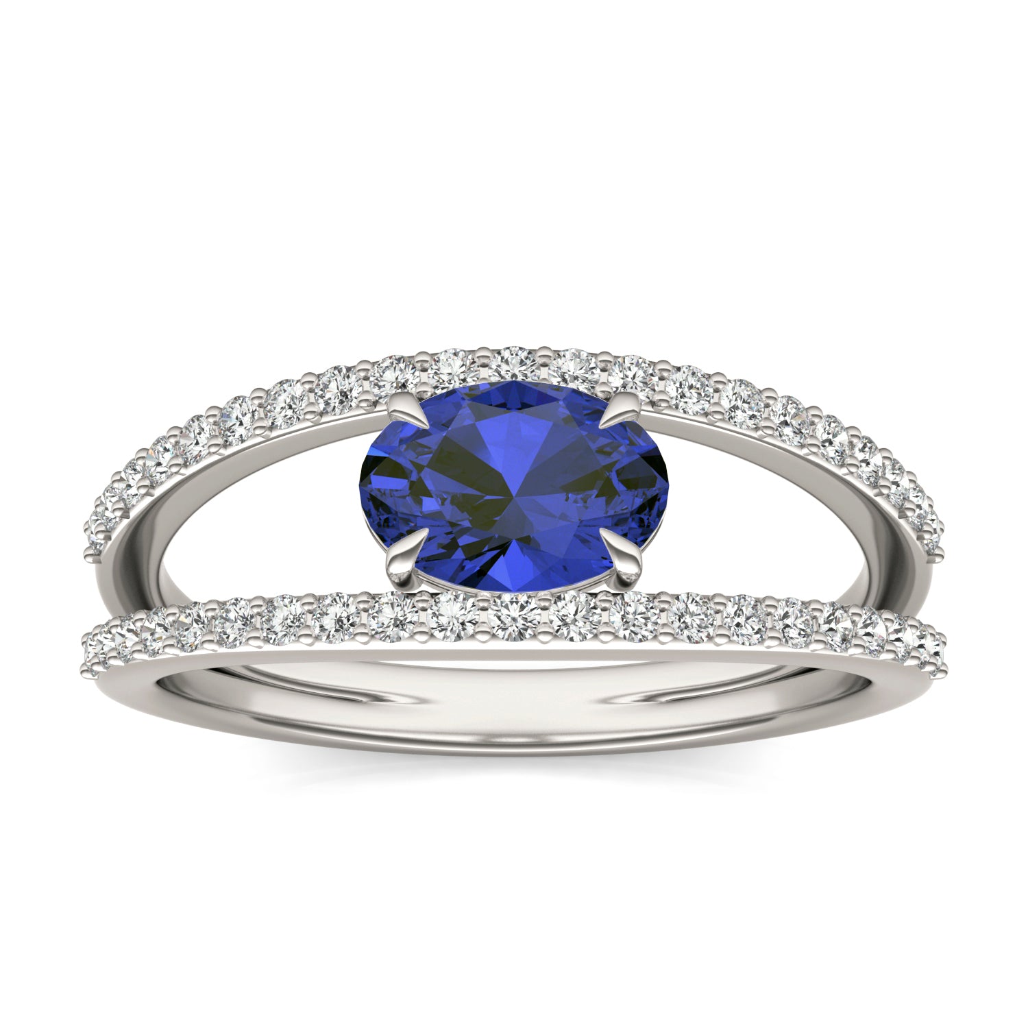 1/3 CTW Round Caydia Lab Grown Diamond Split Shank Ring 14K White Gold featuring Created Sapphire