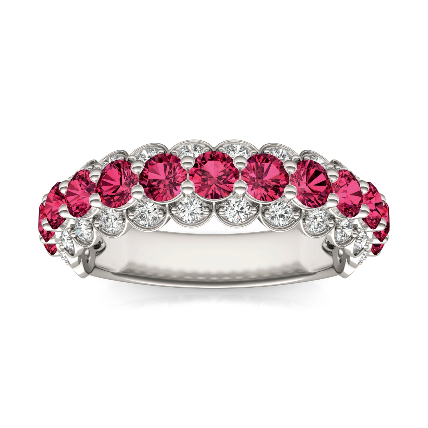 1/2 CTW Round Caydia Lab Grown Diamond Three Row Ring 14K White Gold featuring Created Ruby