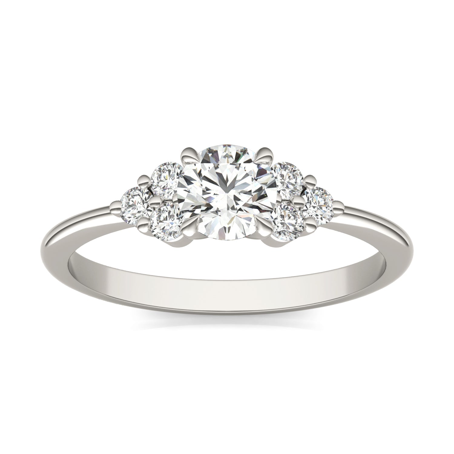 2/3 CTW Round Caydia Lab Grown Diamond Side Accents Petite Ring 14K White Gold