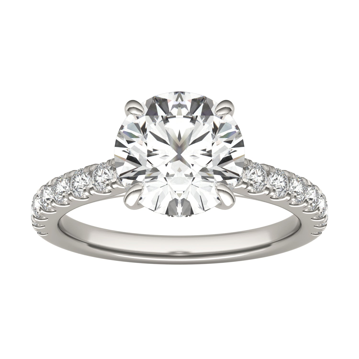 3 CTW Round Caydia Lab Grown Diamond Hidden Halo with Side Accents Engagement Ring 18K White Gold