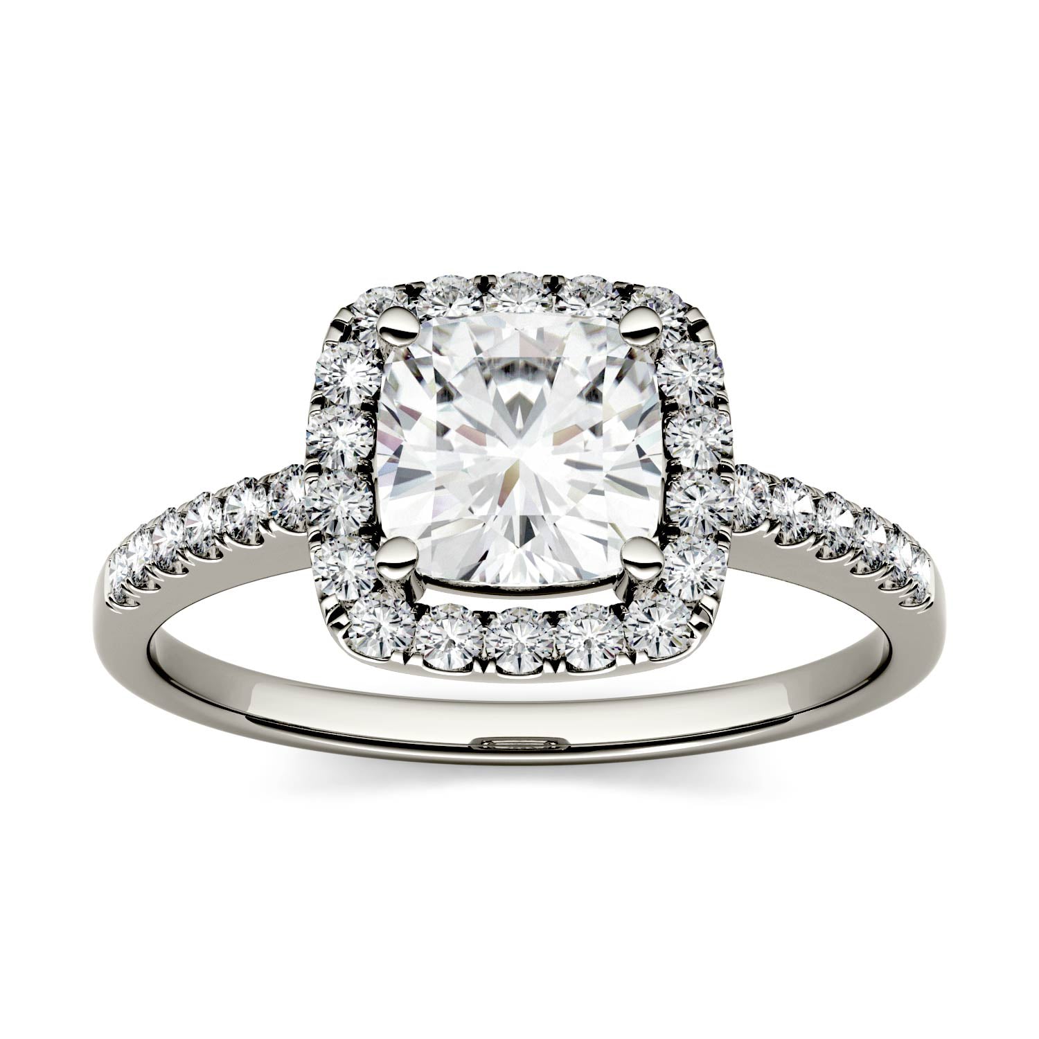 1.40 CTW DEW Cushion Forever One Moissanite Halo Engagement Ring in 14K White Gold