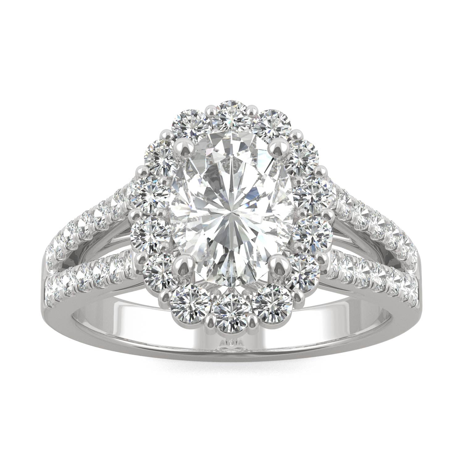 2.14 CTW DEW Oval Forever One Moissanite Signature Halo Split Shank Engagement Ring in 14K White Gold
