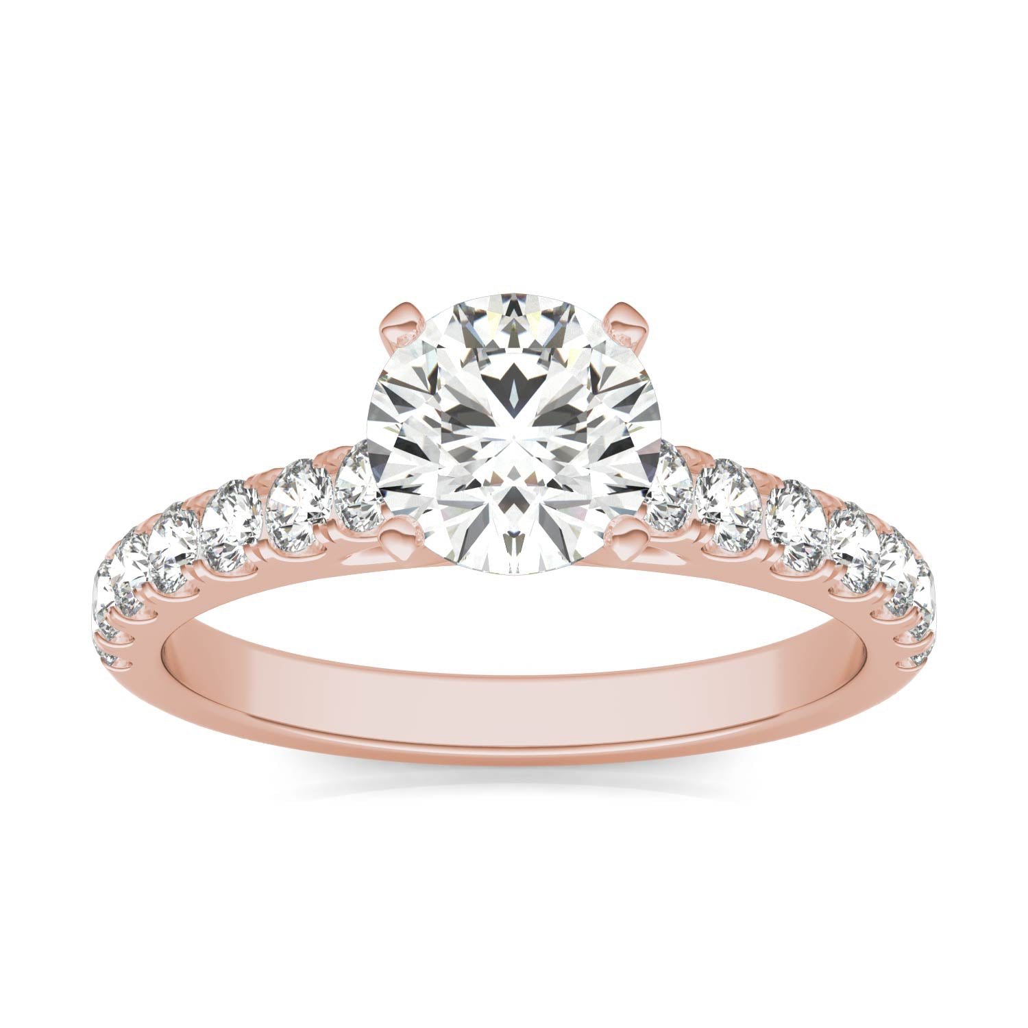 1 CTW Round Caydia Lab Grown Diamond Solitaire with Side Accents Engagement Ring 18K Rose Gold