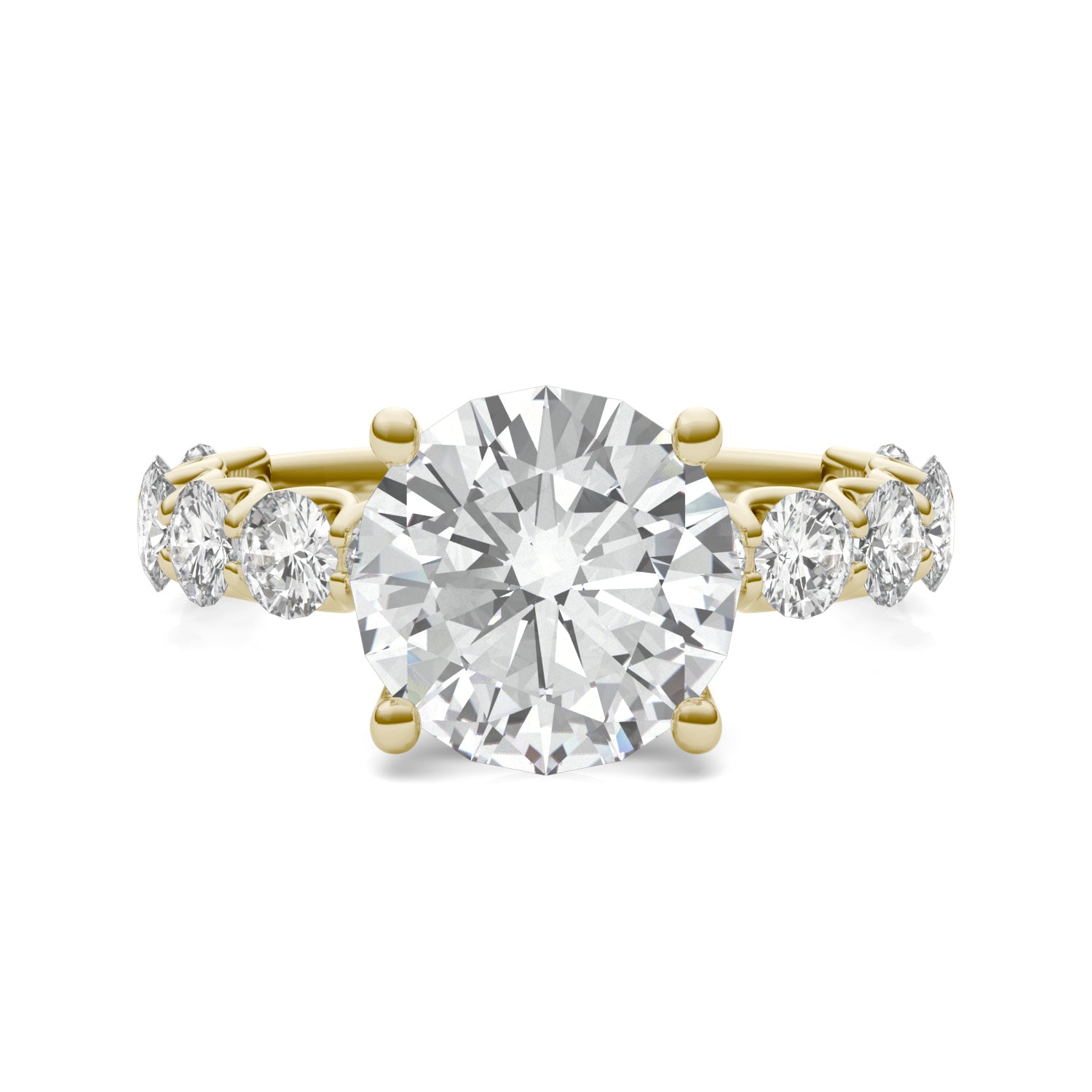 4.66 CTW DEW Round Forever One Moissanite Trellis Engagement Ring 14K Yellow Gold