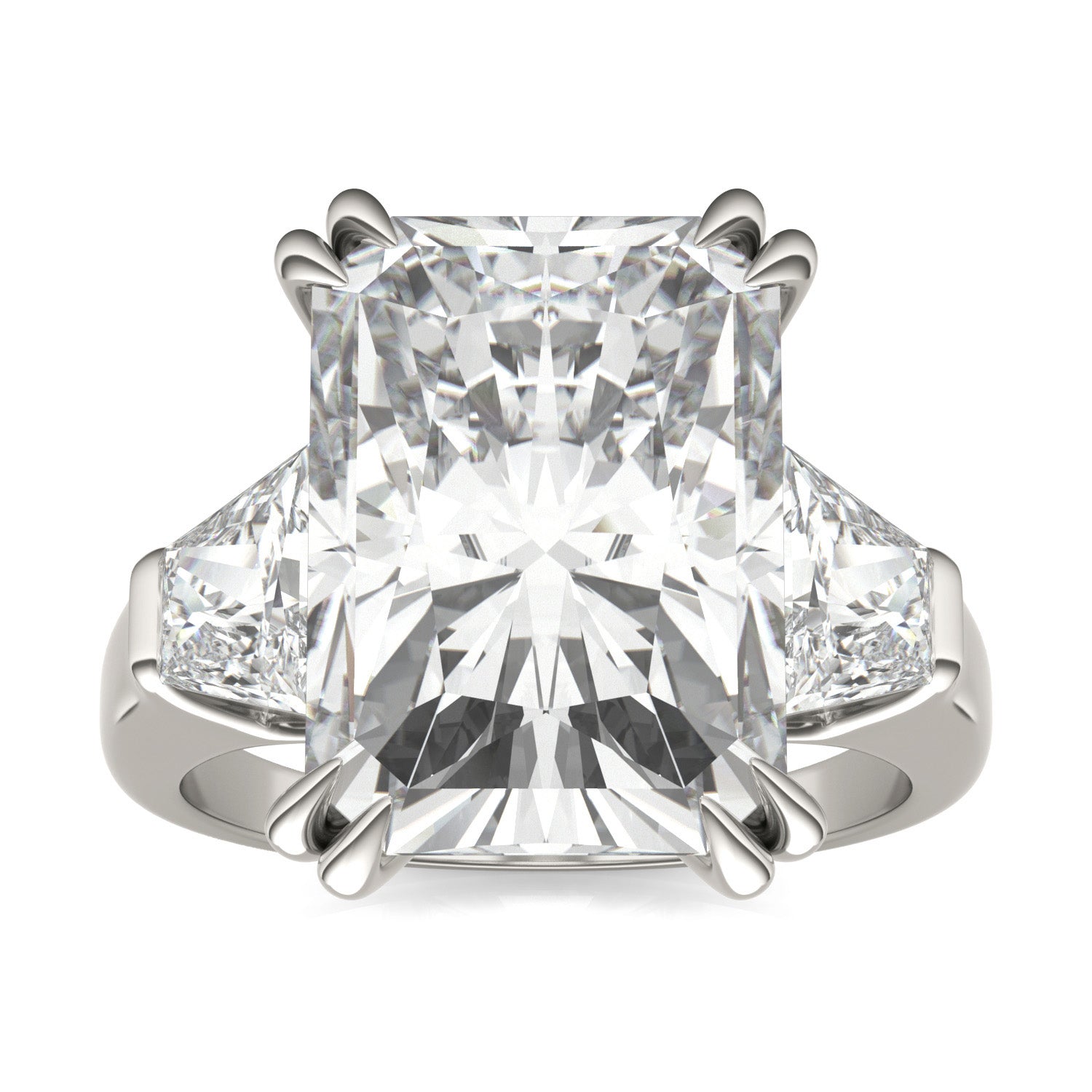 11.42 CTW DEW Radiant Forever One Moissanite Three Stone Exotic Ring 18K White Gold